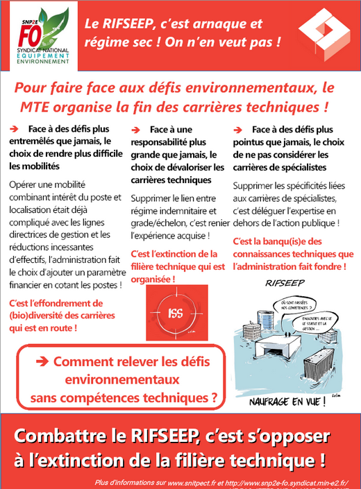 Face à l’absence totale de concertation, et la volonté forcenée de l’administration de passer en force, les préjudices financiers qui risquent d’être supportés par les agents de la filière technique, Force Ouvrière n’est pas restée les bras croisés à accompagner l’administration dans son entreprise de démolition de la filière technique, entreprise déjà bien entamée avec PPCR et ses supporters.