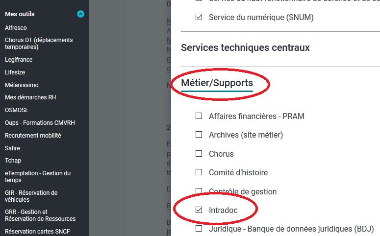 Dans Métiers/support, sélectionnez Intr@doc et finalisez par « Mettre à jour mes préférences » en bas de page.